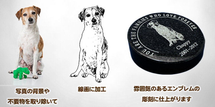 ペットの写真を独自の技法により線画で表現します。レーザー彫刻との違いは